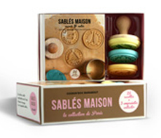 Non poteva mancare il libro-gadget. I francesi li adorano…le loro librerie erano piene di queste scatolette kit quando da noi certe cose si trovavano solo nei casalinghi più forniti. Ovviamente anche io non resisto. E se devo essere sincera ho comprato questa box unicamente per il fantastico set di empreintes con sopra rispettivamente Tour Eiffel, Arco di Trionfo e Sacro Cuore. Irresistibili…E in automatico il libretto è caduto nel dimenticatoio. Poi, dopo mesi, il librino è stato riscoperto e avidamente studiato, testato imburrato e infarinato. Escludendo il sablé rosso fuoco (con colorante) gli altri biscottini che sgusciano da queste pagine sono deliziosi.