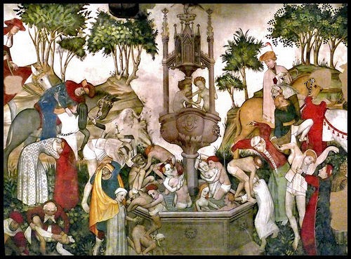 LĂŹ in mezzo, come in ogni Hortus Conclusus che si rispetti zampilla una meravigliosa fonte della giovinezza, dove i miei cari dolci vecchierelli possono farsi il bagno e ringiovanire immediatamente come nella piĂš verde speranza umana.