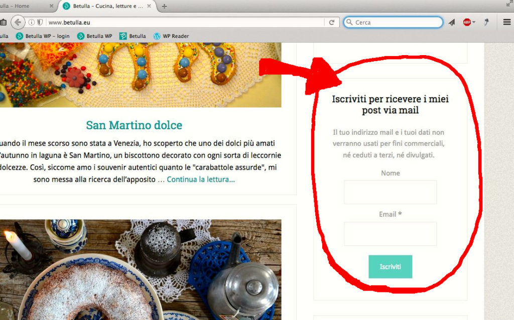 Da qualche tempo ho attivato la possibilità di iscriversi al blog via mail, ovvero di ricevere una mail che vi avverte comodamente ogni qual volta pubblico un post (é più lungo a dirsi che a farsi, perché basta compilare questa casellina che trovate sulla colonna destra!).