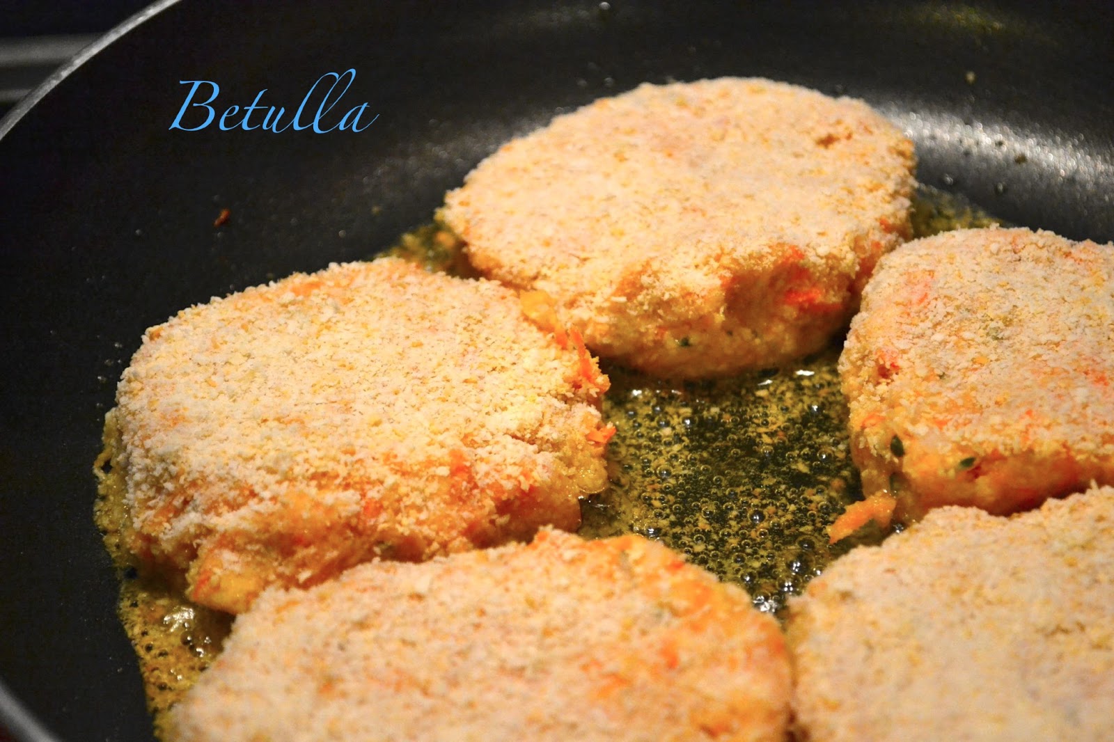 -In una terrina capiente grattugiate le carote, unite la pasta di ceci, il riso bollito, il pangrattato due cucchiai di salsa di yogurt, il prezzemolo secco e aggiustate di sale. Mescolate bene tutti gli ingredienti con una forchetta fino ad ottenere un composto sodo. Con le mani formate dei burger belli rotondi, esattamente come quelli di carne, e deponeteli su un piatto spolverato di pan grattato. La dose della ricetta di Marta Steward sarebbe per quattro burgher, ma modificando un po’ le dosi e le dimensioni io ne ho ottenuti otto (si possono conservare tranquillamente in freezer).